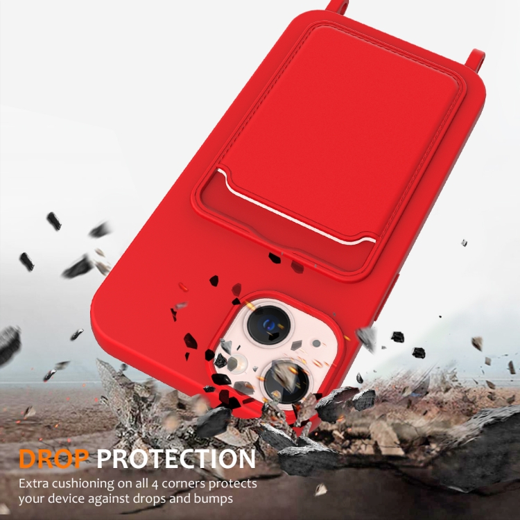 Funda para Teléfono iPhone 14 Bolsa para Tarjeta Integrada Silicona Líquida con Cordón (Rojo)