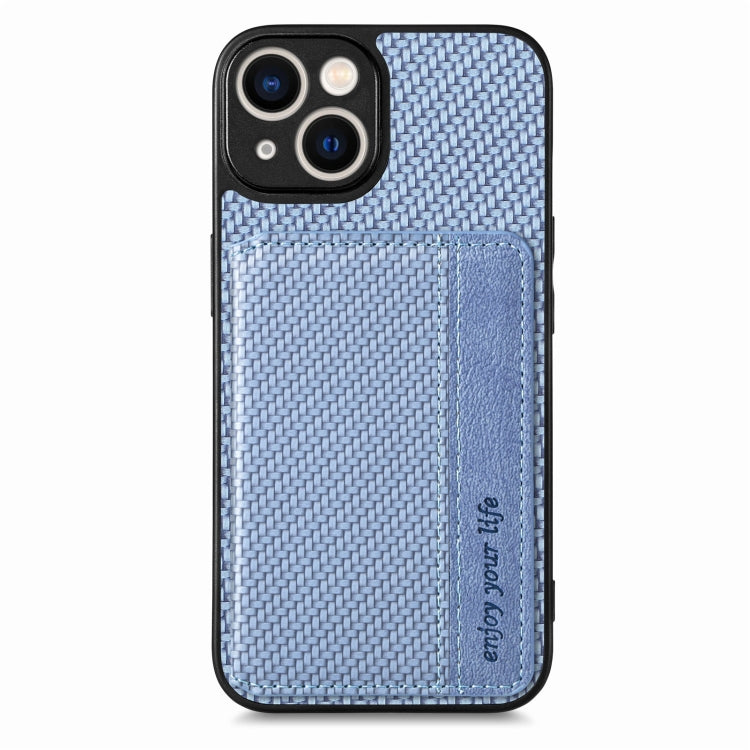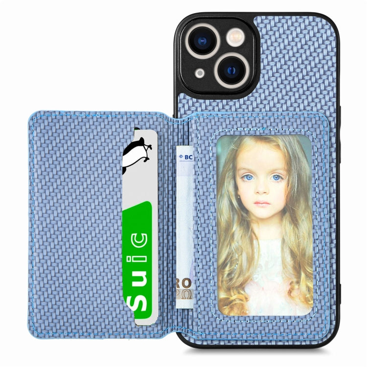 For iPhone 14 Carbon Fiber Magnetic Card Bag Phone Case (Blue)