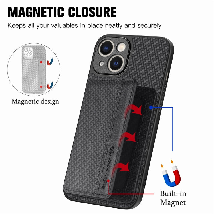 For iPhone 14 Carbon Fiber Magnetic Card Bag Phone Case (Black)