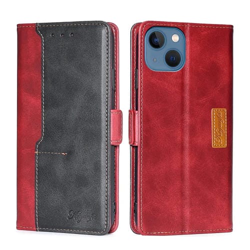 Caja de Teléfono iPhone 14 Cuero Hebilla Lateral Color Contraste (Rojo + Negro)