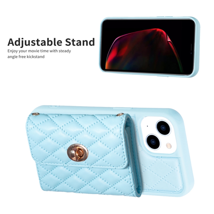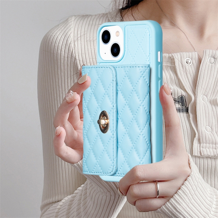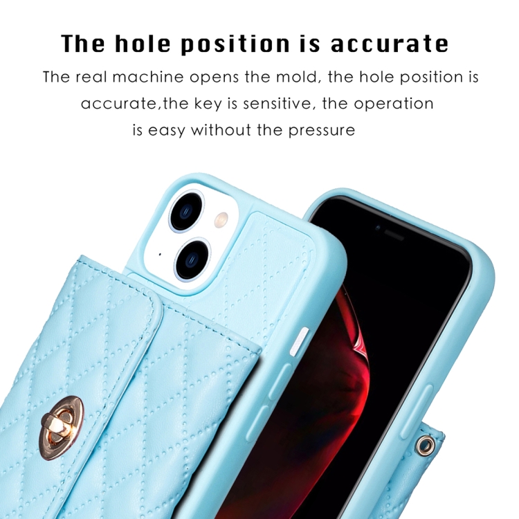 Caja de Teléfono de Cuero Rombal para iPhone 14 con Hebilla de Metal Horizontal (Azul)