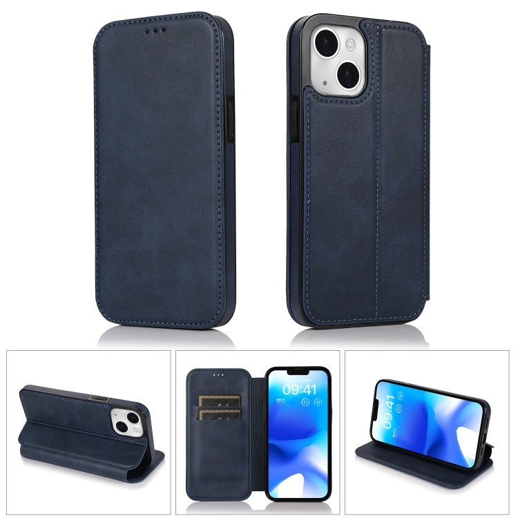 Funda para iPhone 14 Cierre Magnético Fuerte PU + TPU Cuero (Azul)