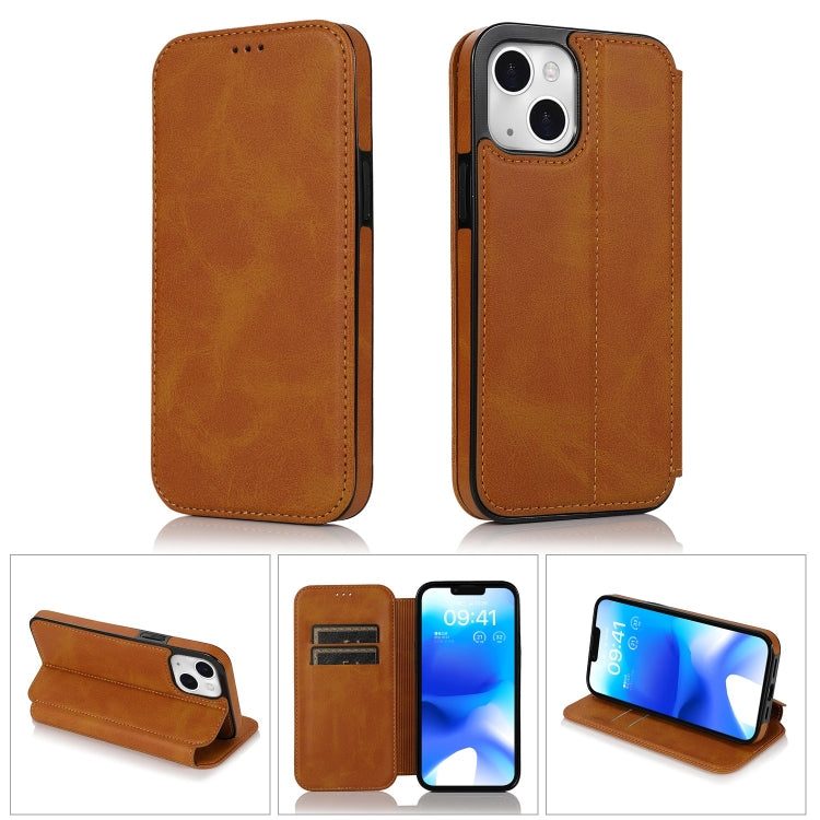 Funda para iPhone 14 Cierre Magnético Fuerte PU y TPU Cuero (Caqui)