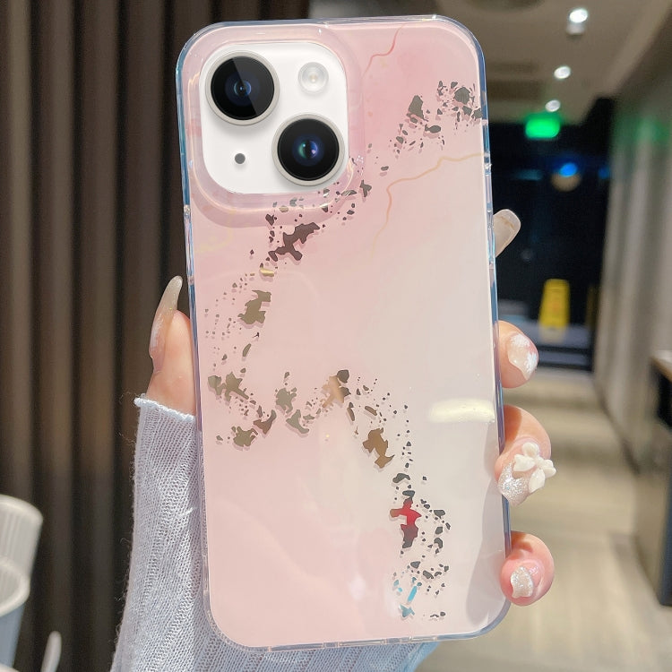 For iPhone 14 Colored Glaze Marble Phone Case (Pink White)