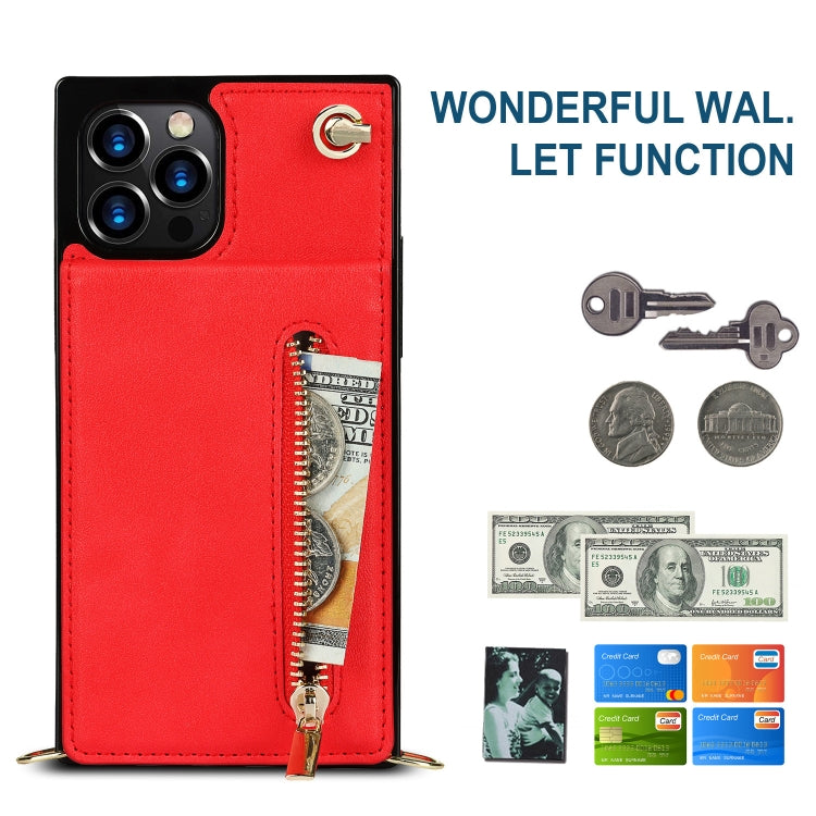 Funda para iPhone 14 Cross-Body Zipper Square con Soporte (Rojo)