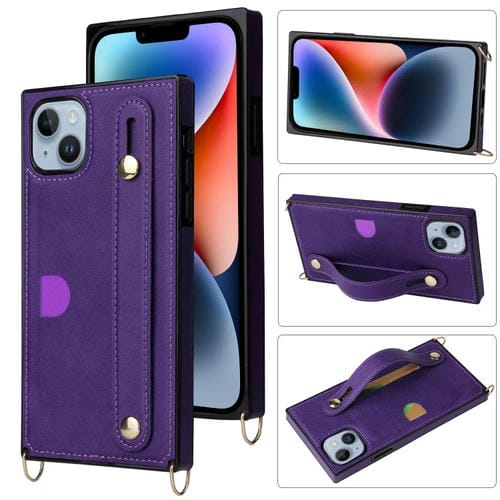Funda Protectora para iPhone 14 Crossbody Lanyard a Prueba de Golpes (Púrpura)