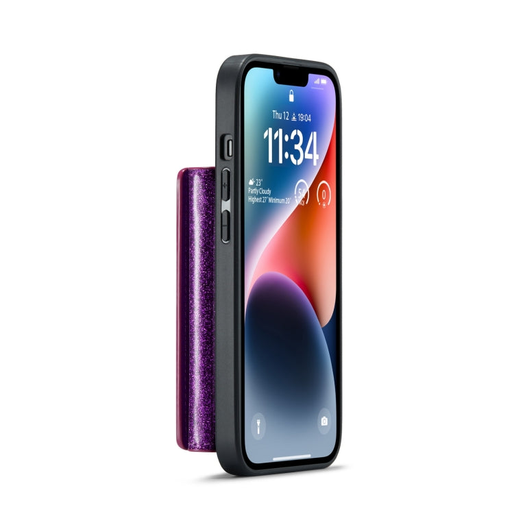 Funda de Cuero Dg.Ming M3 Series para iPhone 14 con Glitter Powder y Porta Tarjetas (Morado Oscuro)