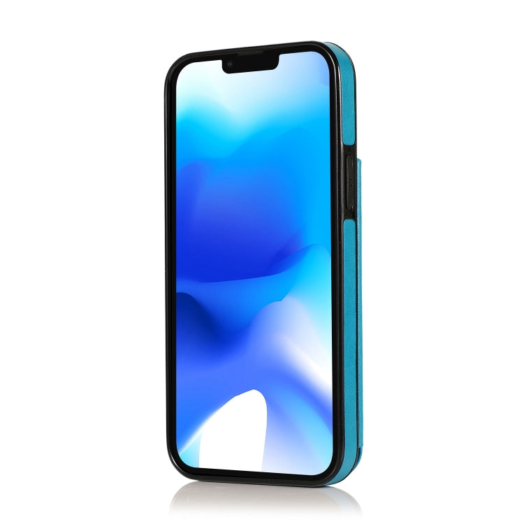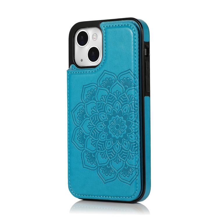 Funda de Cuero para iPhone 14 Doble Hebilla Mandala con Tapa Trasera (Azul)