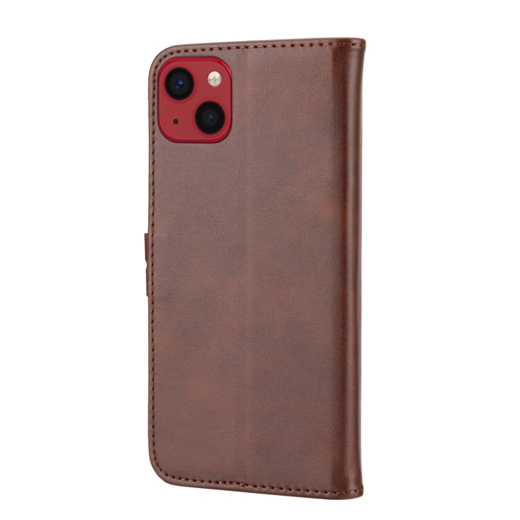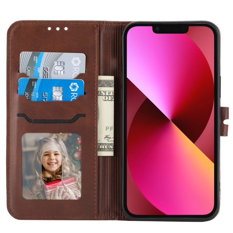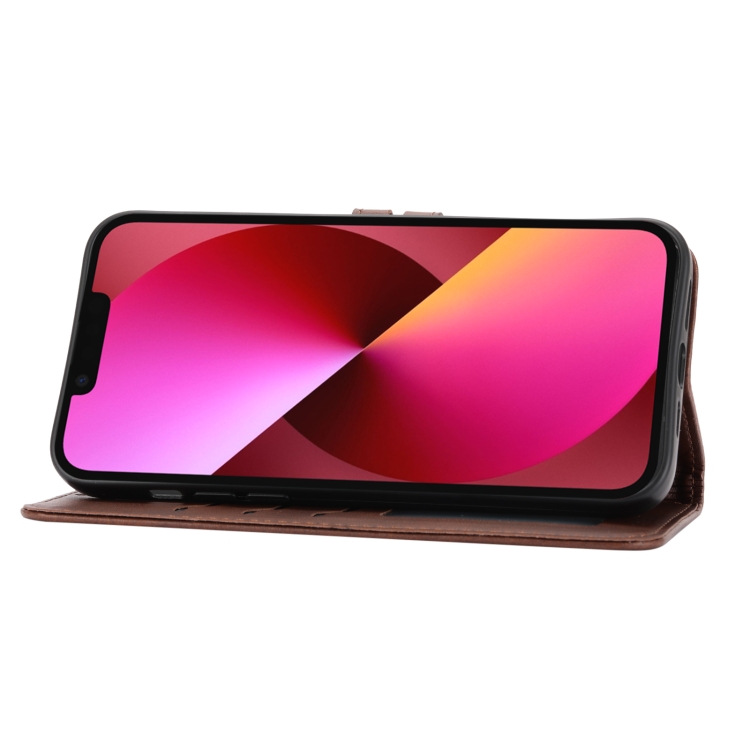 Funda Flip de Cuero iPhone 14 Happy Cat Pattern en Relieve (Marrón)