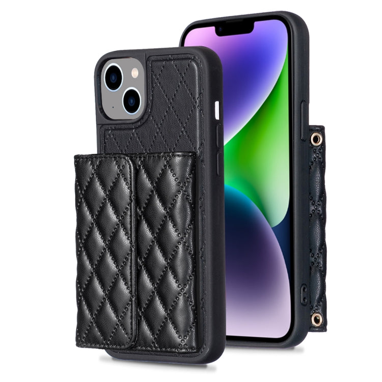 Estuche de Teléfono Cuero Rómbico con Billetera Horizontal para iPhone 14 (Negro)