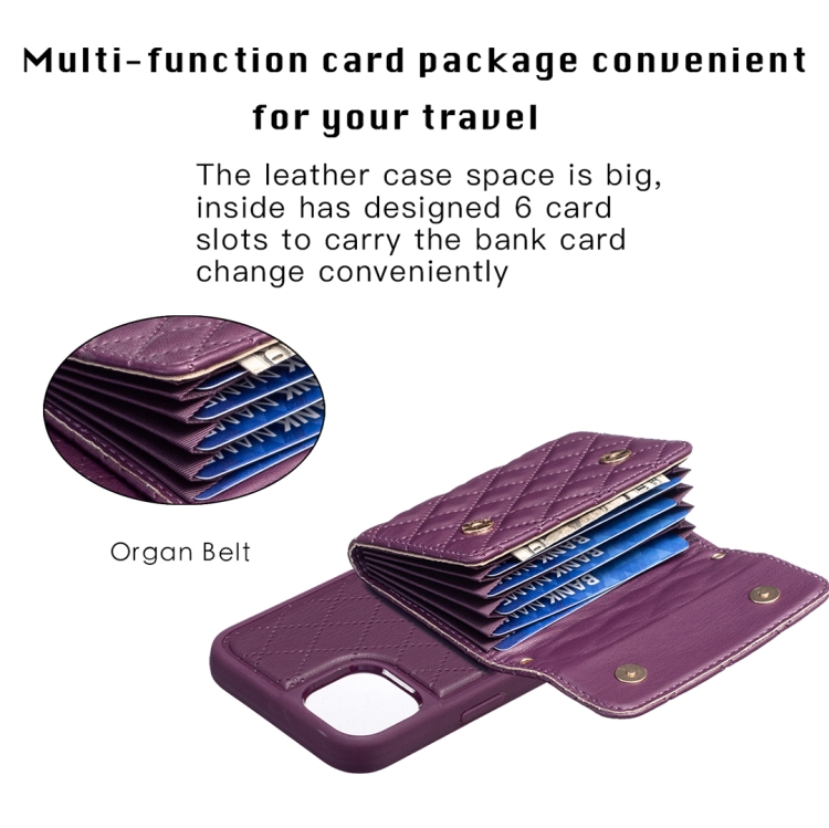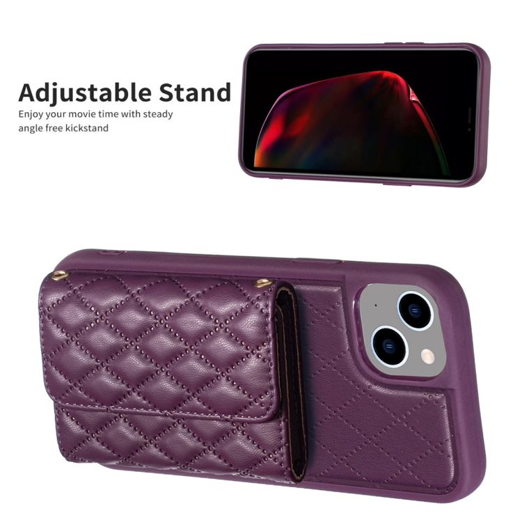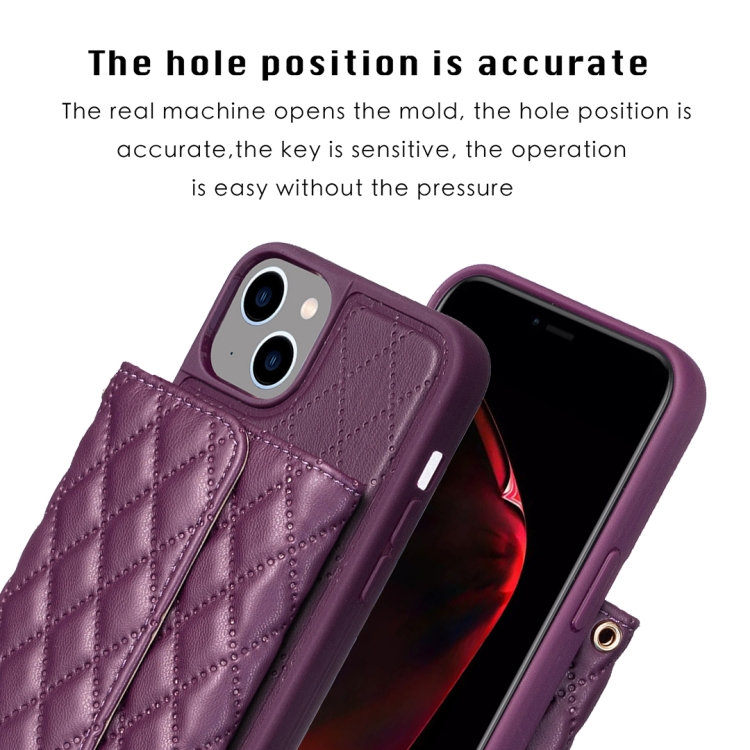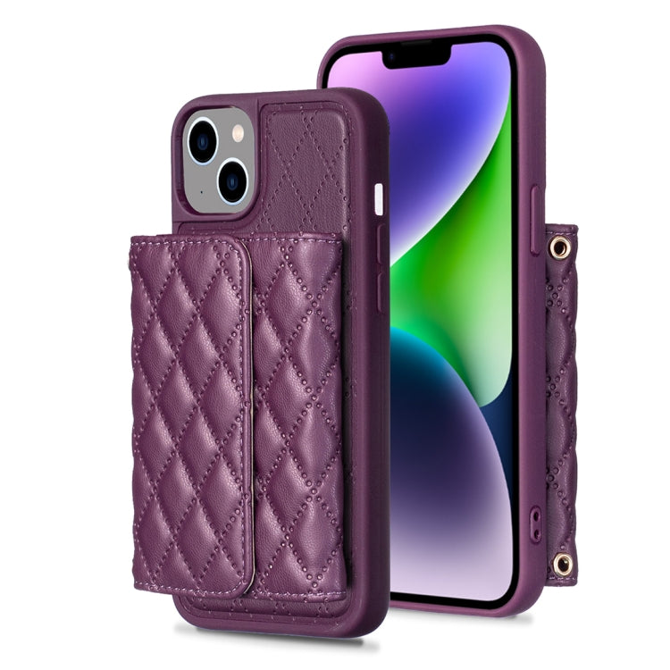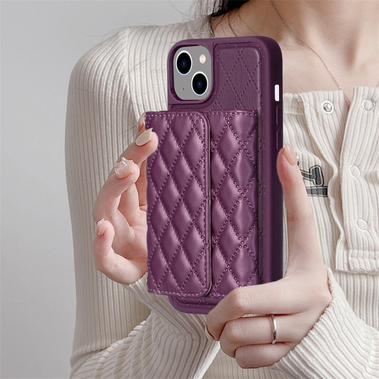 Estuche de Teléfono iPhone 14 Cuero Rómbico con Billetera Horizontal (Púrpura Oscuro)