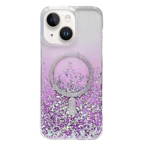 For iPhone 14 MagSafe Hybrid Phone Case Gradient Glitter TPU PC Case (Gradient Purple)
