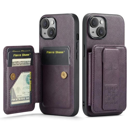 Funda para teléfono Fierre Shann iPhone 14 Oil Wax con tarjetero de cuero de vaca (Púrpura)