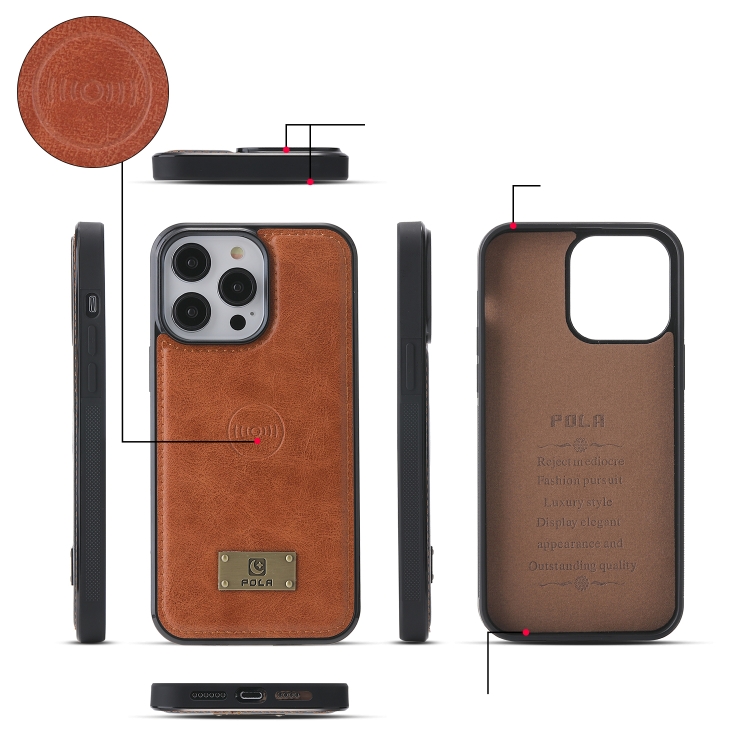 Funda para Teléfono iPhone 14 Cuero Billetera Cremallera Multifuncional (Marrón)