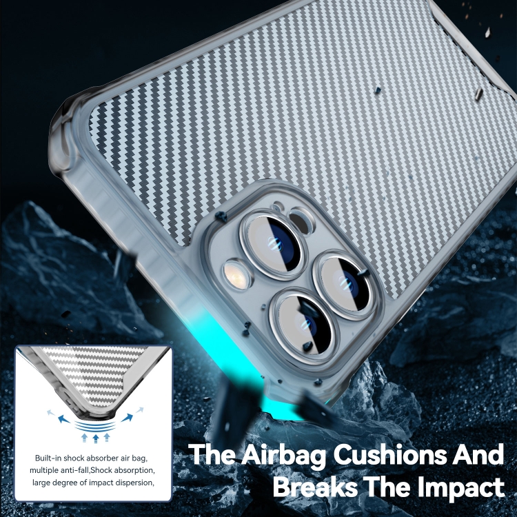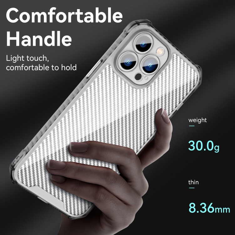 Funda de Teléfono para iPhone 14 a Prueba de Golpes con Textura de Fibra de Carbono (Negro Transparente)