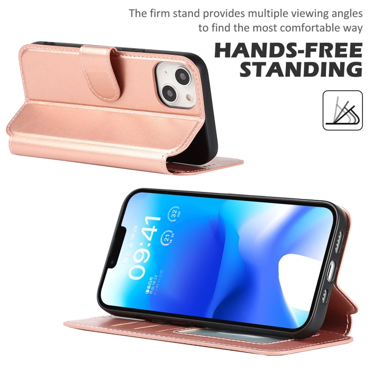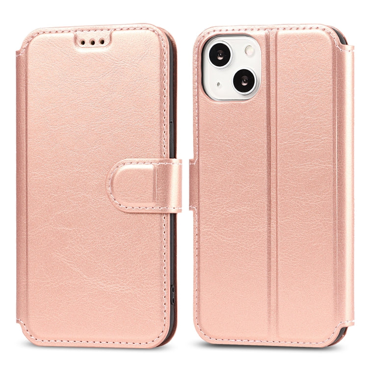 Funda de Teléfono para iPhone 14 Cuero PU + TPU a Prueba de Golpes (Oro Rosa)
