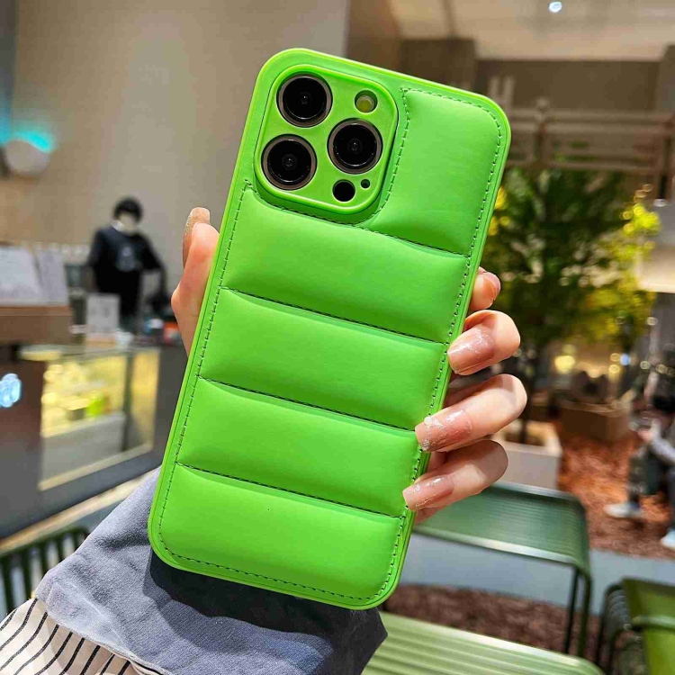 Funda para Teléfono iPhone 14 con Airbag de Edredón y Orificio Fino (Verde)