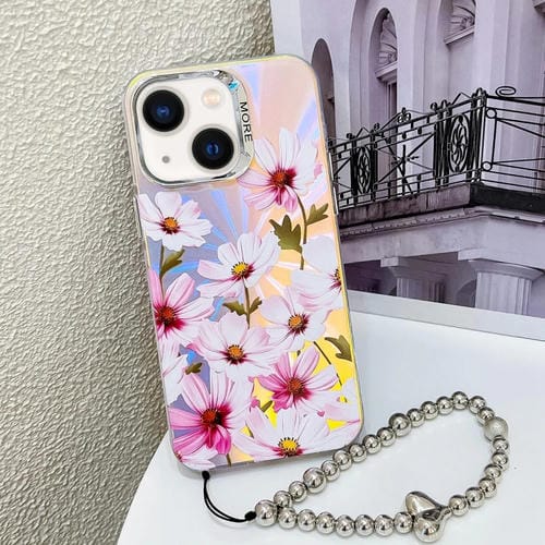 Funda para Teléfono iPhone 14 Cosmos Flower Ah7 Flor Láser Galvanizada con Correa para la Muñeca