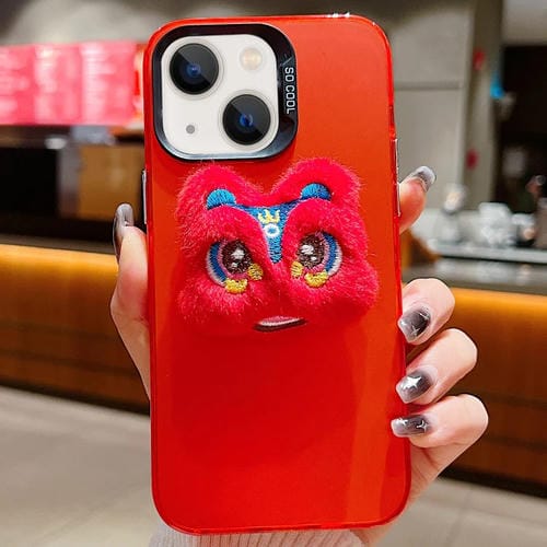 Funda para teléfono iPhone 14 Muñeco de Peluche Danza del León Año Nuevo (León Rojo con Espalda Roja)