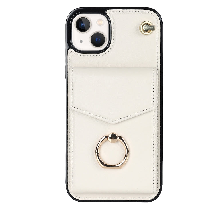 For iPhone 14 Phone Case with RFID Anti-Theft Card Slot (Beige)
