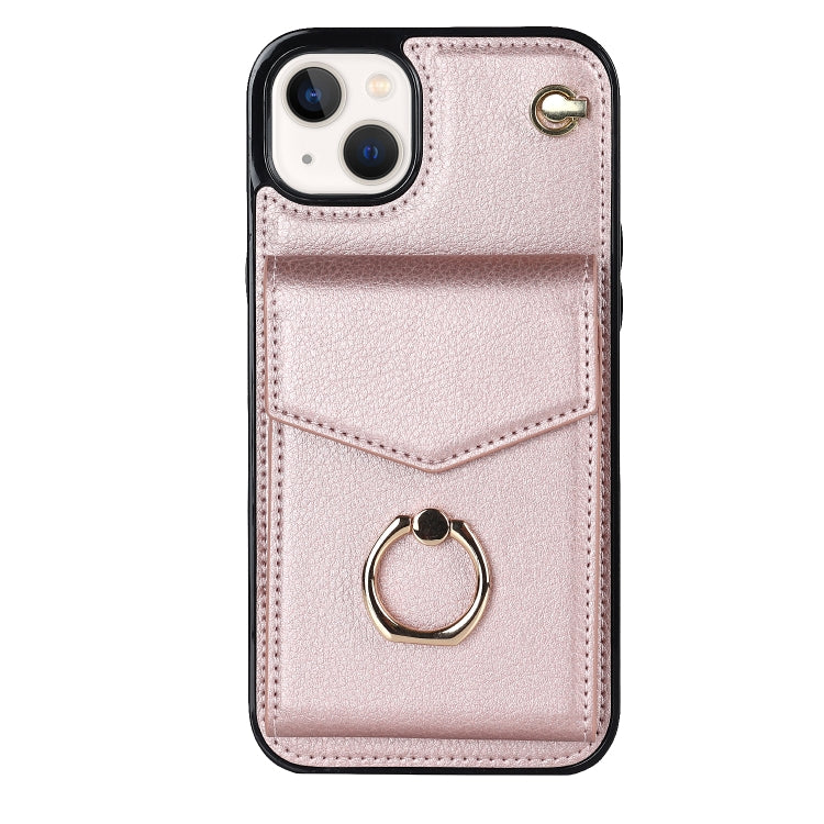For iPhone 14 Phone Case with RFID Anti-Theft Card Slot (Rose Gold)
