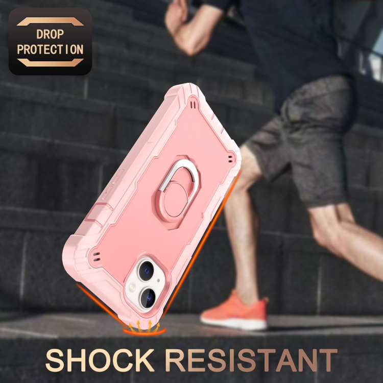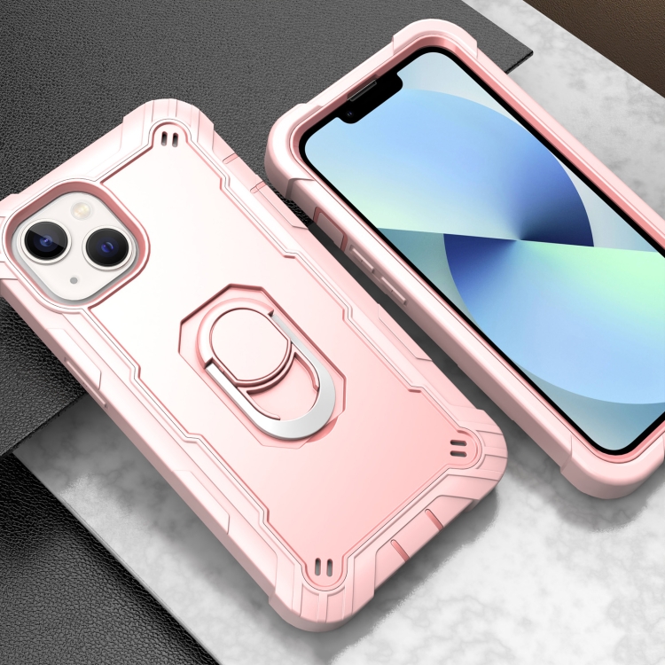 Funda para Teléfono iPhone 14 con Soporte de Anillo Dos Colores (Oro Rosa)
