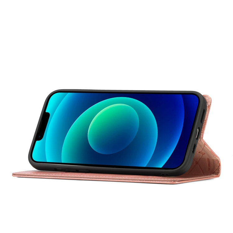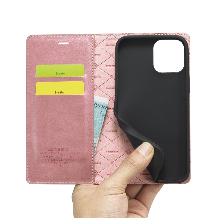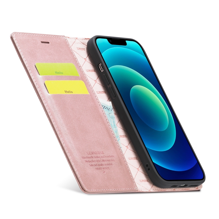 Estuche para Teléfono Lc.Imeeke iPhone 14 Cuero Magnético con Soporte y Ranuras para Tarjetas (Oro Rosa)