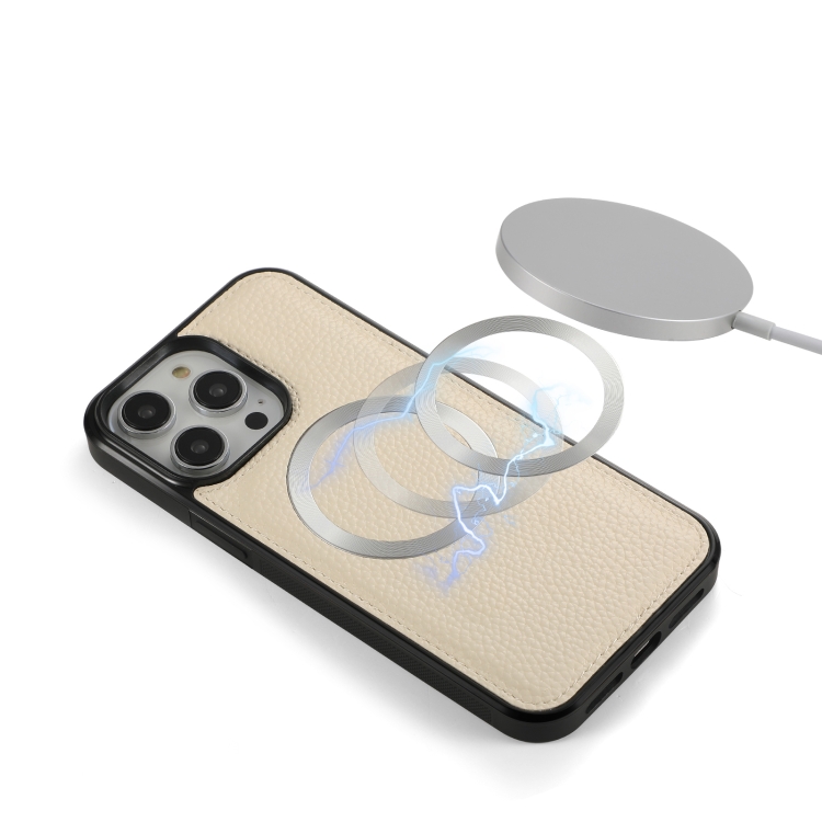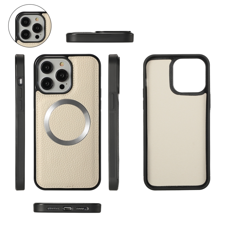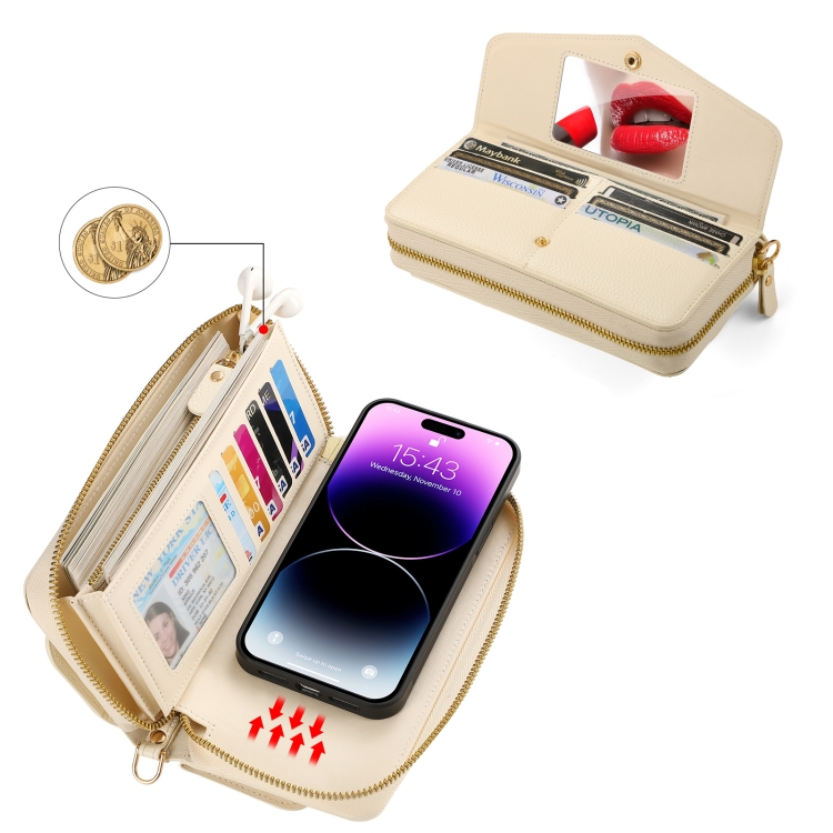 Funda para Teléfono iPhone 14 Magsafe Crossbody Cartera Multifuncional con Cremallera Cuero Litchi (Blanco)