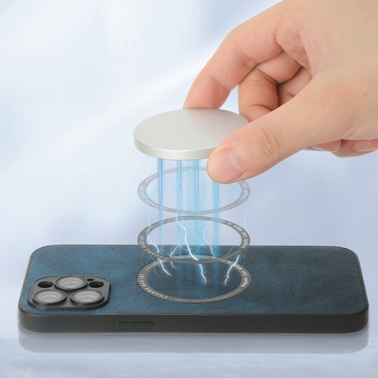 Funda de teléfono para iPhone 14 Magsafe con textura de cuero (Azul)