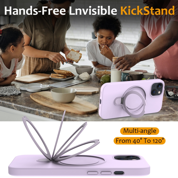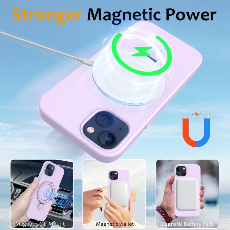 Funda para Teléfono iPhone 14 Magsafe Silicona Líquida Magnética con Soporte para Anillo (Púrpura Lila)