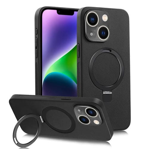 Soporte giratorio Magsafe + Funda de cuero para iPhone 14 (Negro)