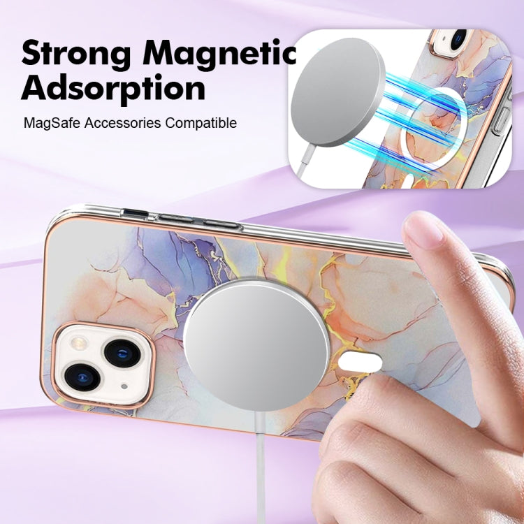 Funda para iPhone 14 Imd Magsafe TPU Doble Cara Patrón Mármol (Blanco)