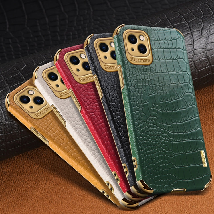 Caja del Teléfono iPhone 14 Plus 6D Galvanoplastia con Textura de Cocodrilo (Blanco)