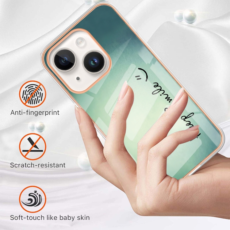 Caja de teléfono iPhone 14 Plus Imd Doble Cara Mármol Galvanizado (Sonrisa)