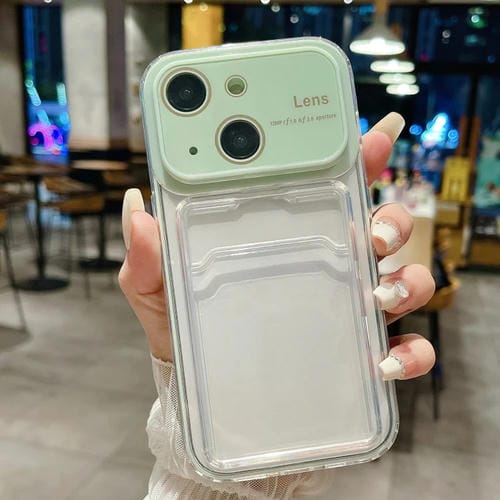 Estuche híbrido para iPhone 14 Plus TPU con ventana grande para PC y ranura para tarjeta (Verde)