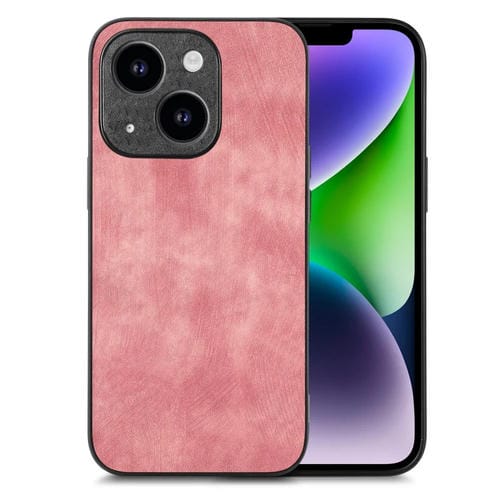 Funda de Teléfono para iPhone 14 Plus con Contraportada de Cuero Vintage para PC (Rosa)
