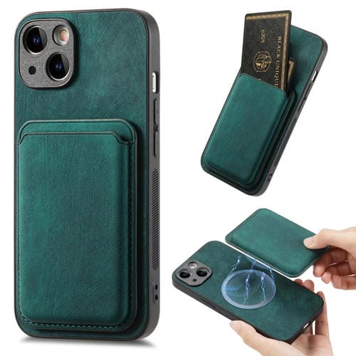 Funda de Teléfono para iPhone 14 Plus Magnética con Bolso de Tarjeta de Cuero Retro (Verde)