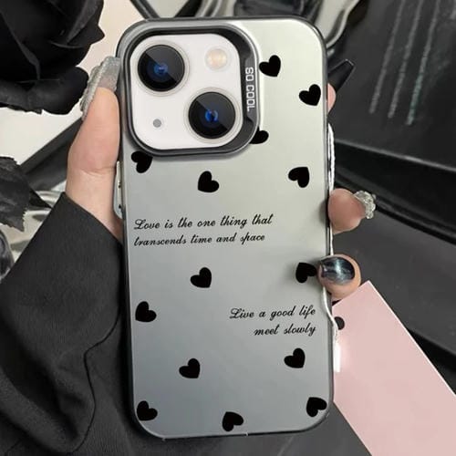 For iPhone 14 Plus Hybrid PC Silver Paint TPU Phone Case (Love Hearts Black)