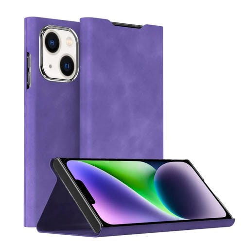Funda Magnética de Cuero para iPhone 14 Plus con Textura de Napa y Soporte (Púrpura)