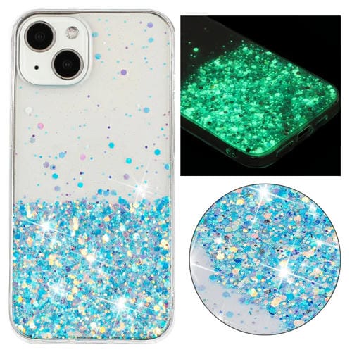 For iPhone 14 Plus Noctilucent Glitter Powder TPU Phone Case with Clear Frame (Blue)