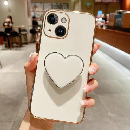 Funda para Teléfono iPhone 14 Plus Galvanoplastia Love Heart Holder TPU (Blanco)