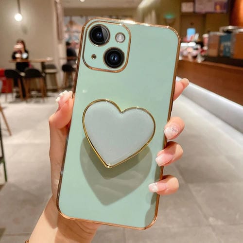 Funda para Teléfono iPhone 14 Plus Galvanoplastia Love Heart Holder TPU (Verde)