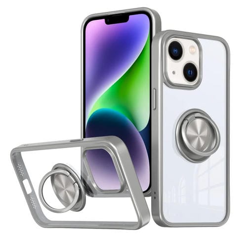 Funda para Teléfono iPhone 14 Plus Ring Holder PC Hybrid TPU (Gris)