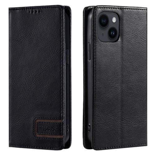 Funda de Teléfono Ttudrch para iPhone 14 Plus Cuero Magnético con Textura Retro (Negro)
