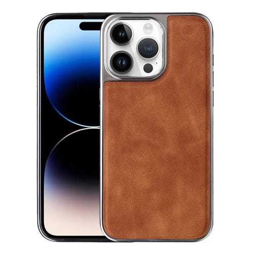 Estuche para Teléfono iPhone 14 Pro Magsafe TPU Híbrido Pu Lateral Galvanizado (Marrón)