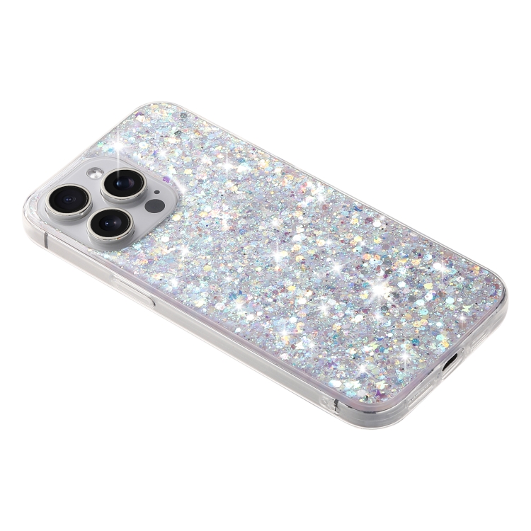 Estuche para Teléfono iPhone 14 Pro Transparente con Purpurina en Polvo TPU (Blanco)