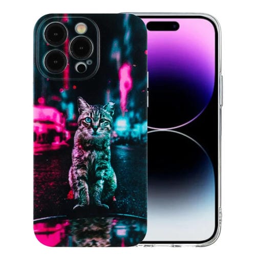 Funda de teléfono TPU para iPhone 14 Pro con patrón de pintura colorida (Gato Semáforo)