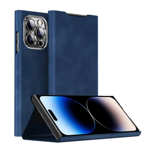 Funda Magnética de Cuero para iPhone 14 Pro con Textura de Napa y Soporte (Azul)