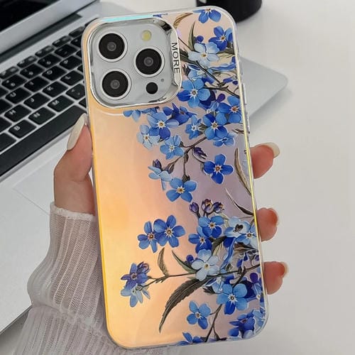 Caja del Teléfono TPU para iPhone 14 Pro Galvanoplastia Láser Flor Textura (Myosotis Ah2)