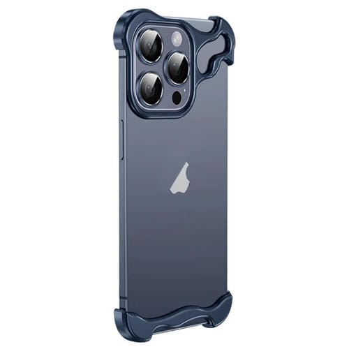 Estuche para Teléfono iPhone 14 Pro Max Almohadilla de Esquina Metal sin Marco con Película para Lentes (Azul)